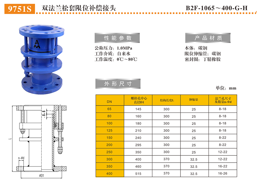 名称:双法兰松套限位补偿接头