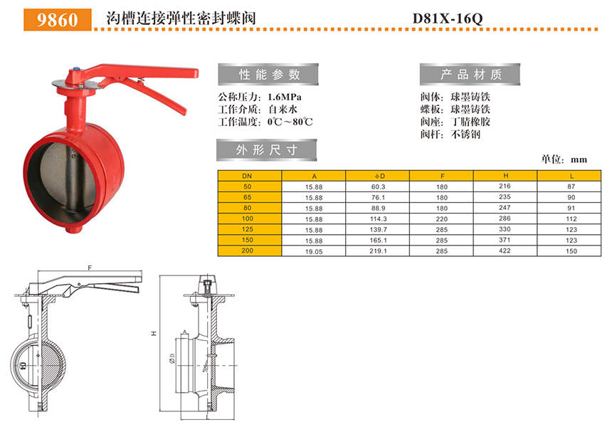 名称:沟槽弹性密封手柄蝶阀