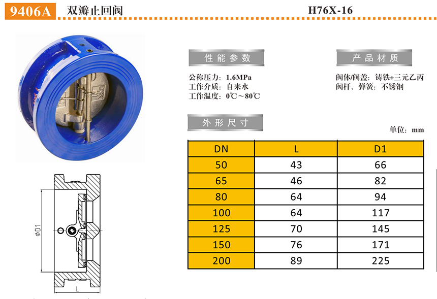 名称:双瓣止回阀