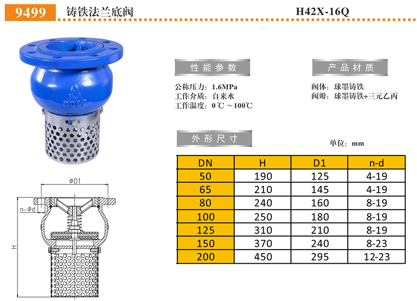名称:铸铁法兰底阀