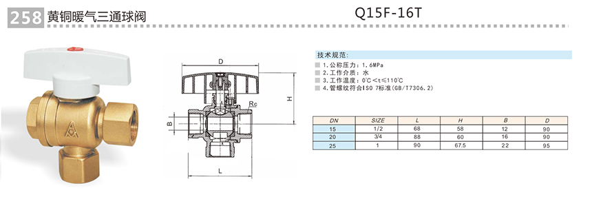 名称:黄铜暖气三通球阀