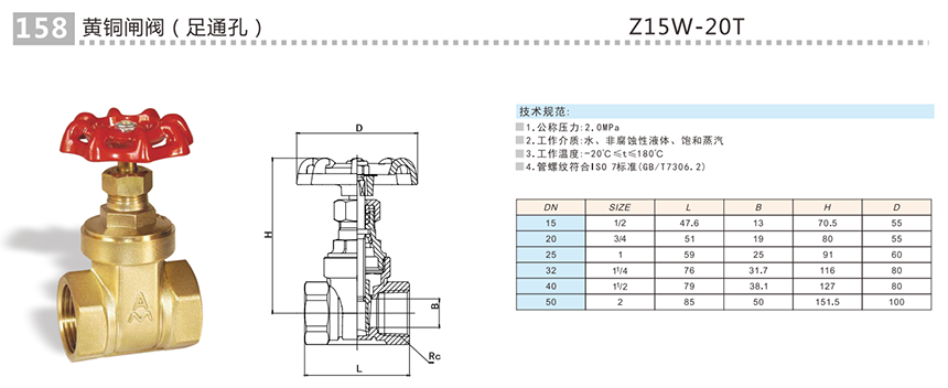 黄铜闸阀(足通孔) Z15W-20T