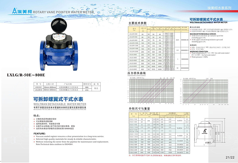 名称:可拆卸螺翼式干式冷/热水表